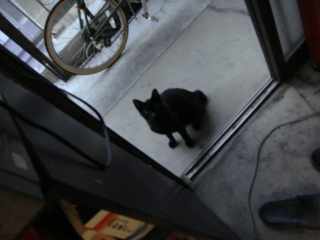 新しい車検証を手に帰宅。近所の野良猫も祝福に。