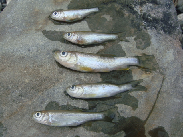 細かくちぎった餌を流すとうじゃうじゃ小魚が集まってくる。