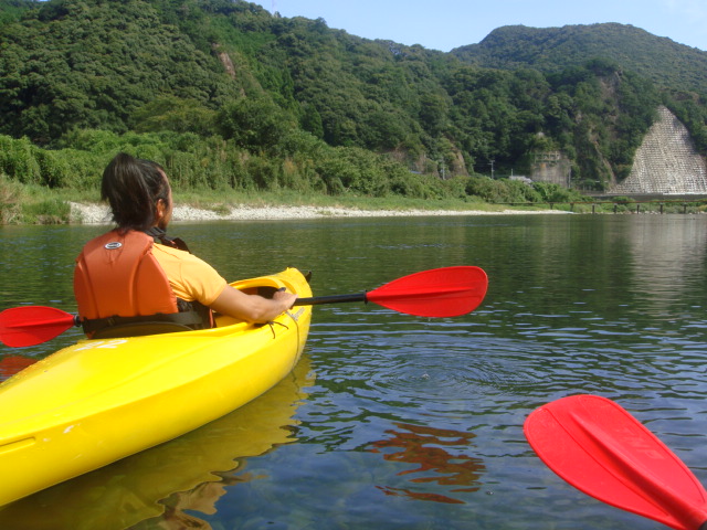 古座川本流でカヤック初体験。一日2000円でレンタルできるのです。