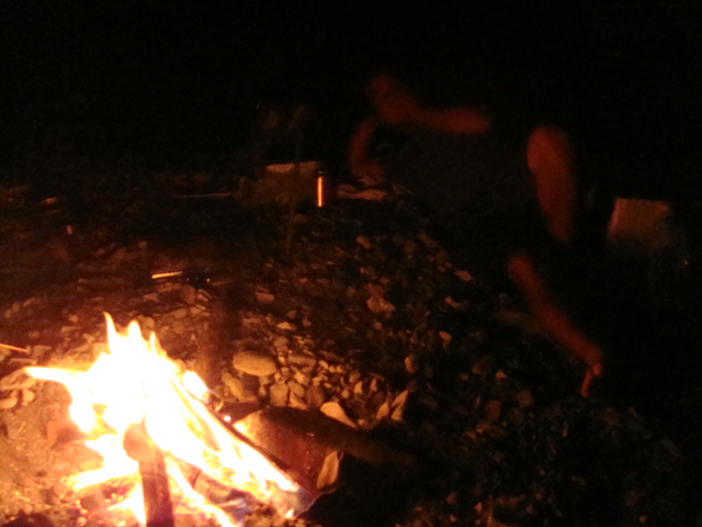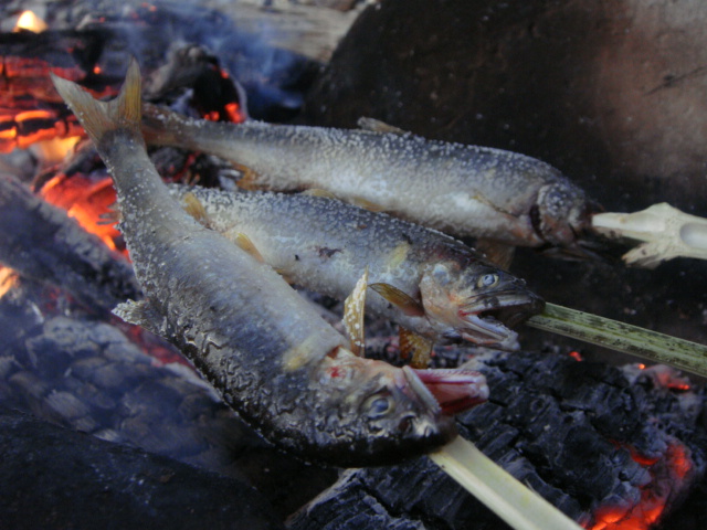 夜には地元の方に譲っていただいた薪と鮎で焚き火と塩焼き。