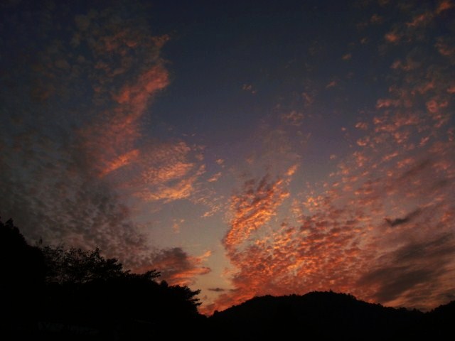 あれは夕焼けなんだ。龍神を通過したんだ。高野龍神スカイラインはこの夏に走ったよ。かなりの距離を走ったね。朝は霧が出たんだ。夜はたき火で暖をとる。
