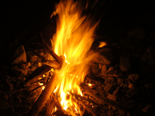 夕日を眺めて飯食った後は豊富な薪、流木で深夜まで焚き火。