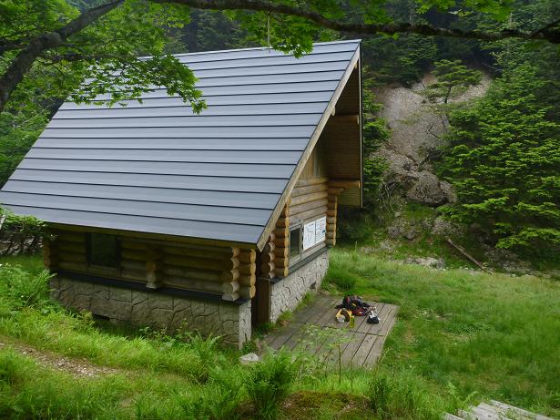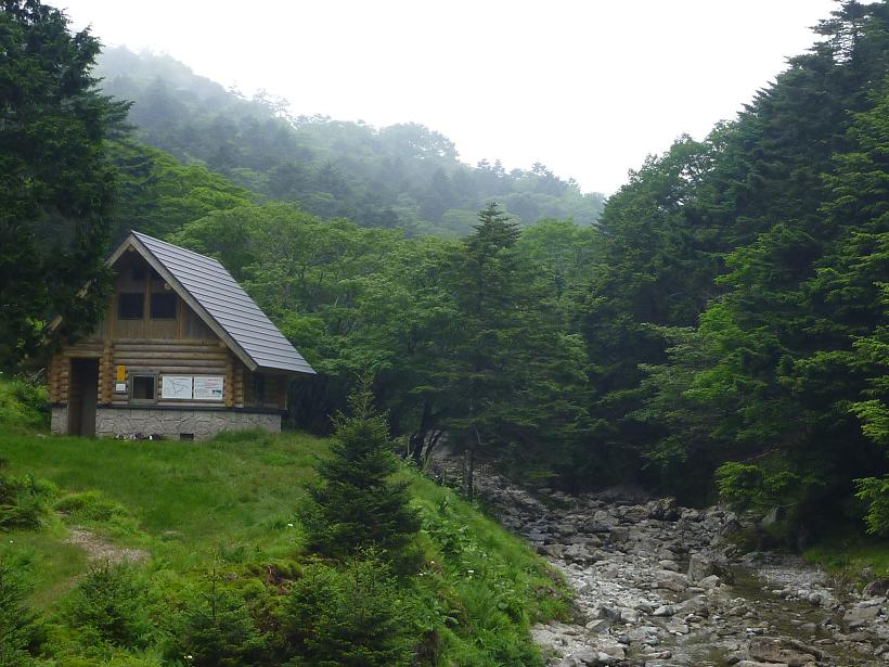 綺麗な避難小屋(無料ですよ)に荷物を下し一息。隣には弥山川の源流。