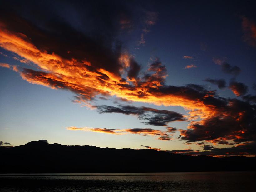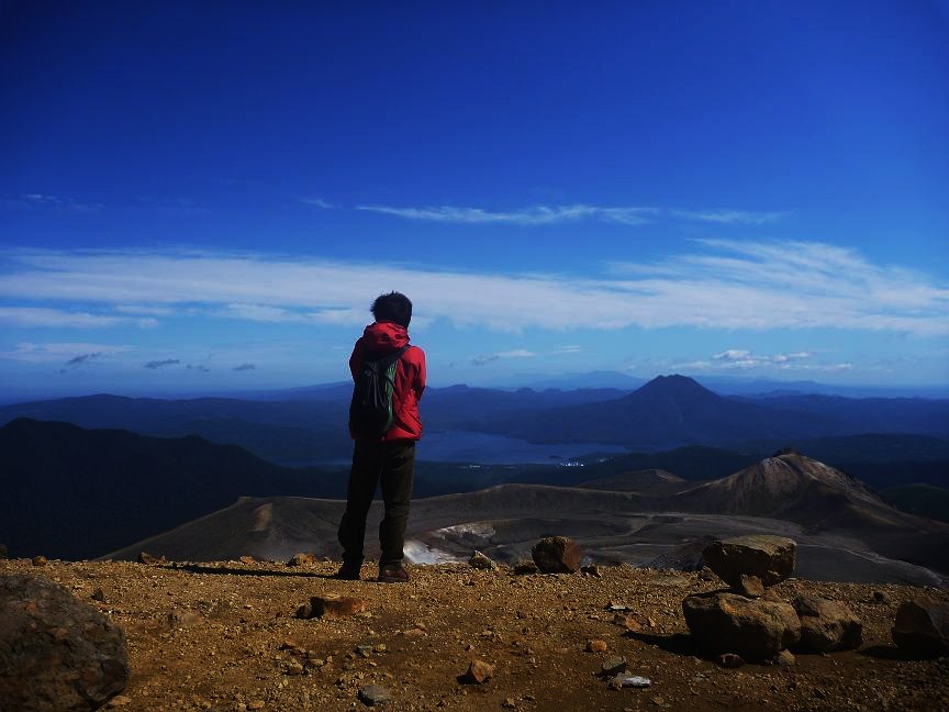 頂上から見えるのは原生林と山と湖のみ。こんなに大きな風景は初めて見た。