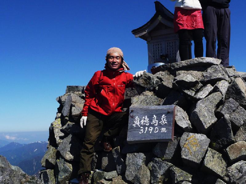 奥穂高に着いたときは安堵感と達成感。思わず山荘でキーホルダを購入しましたよ。