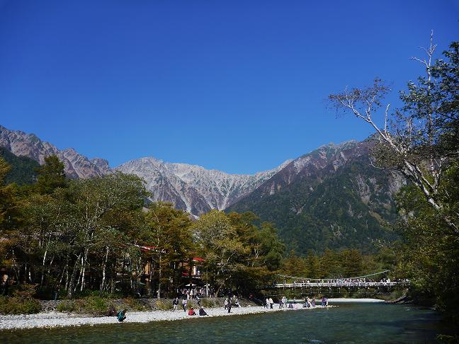 河童橋から前日登った山々を眺めると感慨深いぞ。