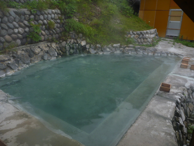 ワイルドな掛け流し温泉が素晴らしい。テント代+300円で入り放題。
