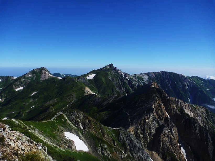 快晴! 五竜、鹿島槍、剣と立山連峰。北アルプスのスター達。